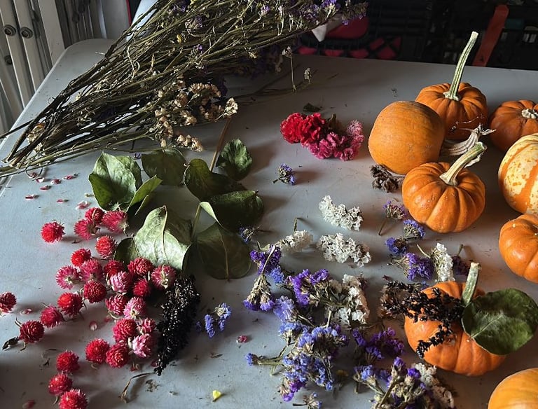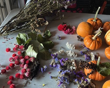Celebrate the beauty of fall at the farm with our Mini Pumpkin & Dried Flower Workshop. In this hands-on class, guests will decorate a mini pumpkin using a variety of locally grown dried flowers and natural accents to create a unique fall centerpiece. Weâll guide you through simple design techniques so you can craft a beautiful seasonal piece perfect for your home or table dÃĐcor.
